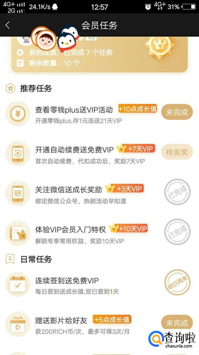最后,点击“会员任务”,并且完成里面相应的任务就可以领VIP了。