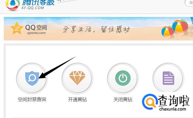 进入之后就会有一个【空间封禁查询】,点击进行查看。就会出现禁封的原因。