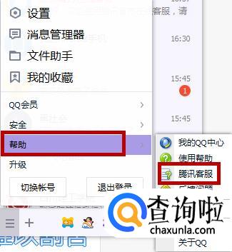 帐号申诉成功以后,就可以去联系QQ客服了,我们打开QQ,然后点击左下角的最边上的菜单符号‘帮助’——腾讯客服——点击一个腾讯产品进入新的页面——联系客服