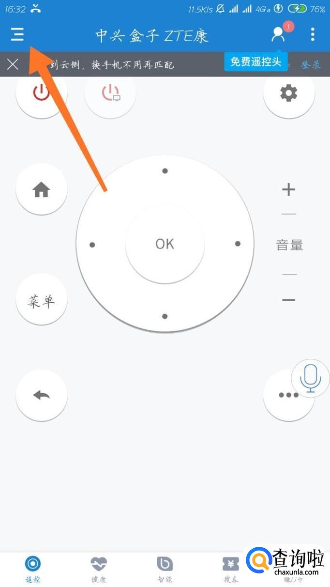 首先下载安装好遥控精灵,这个应用在各大应用市场都有,搜索下载安装即可。进去点击左上角。