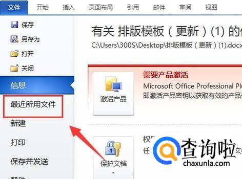 在弹出来的界面里,我们点击左边的"最近所用文件"