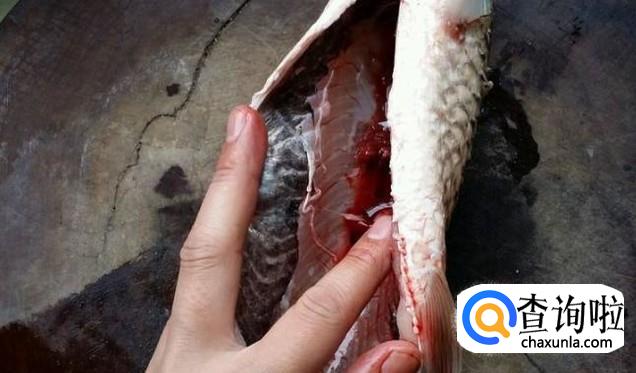 然后把鱼头两侧的鱼鳃的部分撑开,去掉里面的鳃片。如果鱼鳃比较干净,也可以不去掉。
