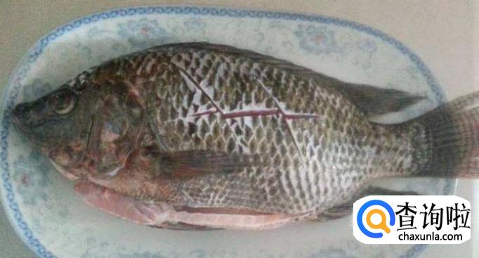 处理好的鱼,清水洗净。然后用刀在鱼腹位置划几刀以便入味。