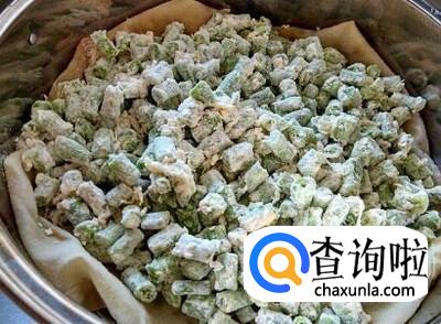 在豆角上放入一些面粉,然后搅拌均匀,在放入锅中蒸熟。