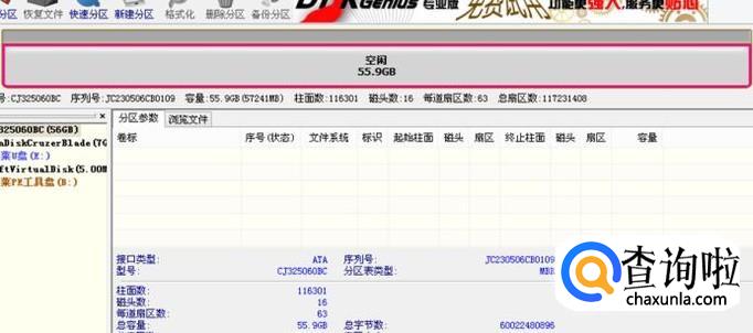 进入PE桌面后,双击“DG分区工具”,打开后可以看到固态硬盘是未经使用的,也没有分区。