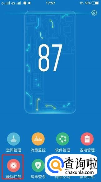 在i管家首页左下角有个“骚扰拦截”选项,点击进入后你会发现有在下方有“信息拦截、来电拦截、广告拦截”,这时你点击来电拦截。