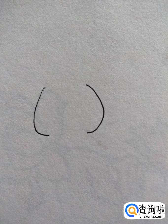 先画小猫的脸,如下图画两个椭圆弧形。注意上面窄一点,下面宽一点,上下方不要封口,留出位置。