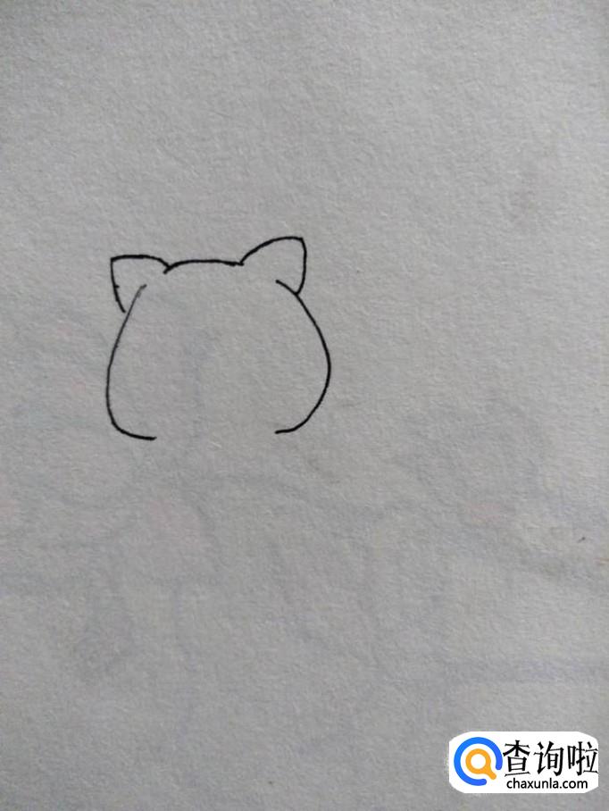 在上方预留的位置处画小猫的耳朵和头顶。