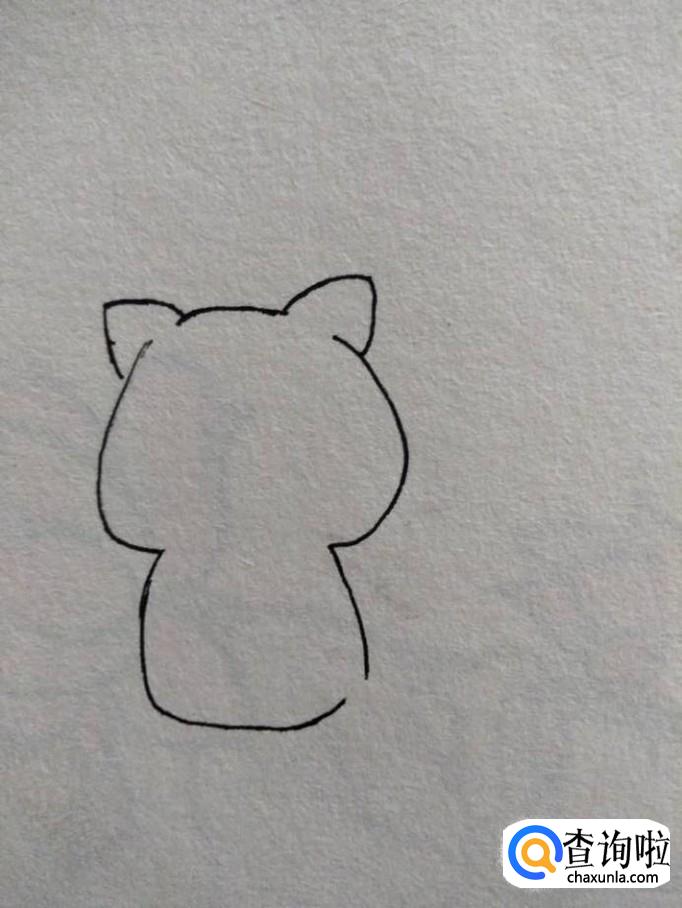 在头部下方预留的位置处画小猫的肚子,注意在右下角留一个小口,不要封闭。