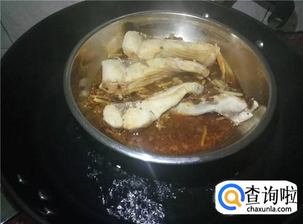 等待鱼块蒸到十分钟后,颜色变白,就代表已经熟了。把鱼块翻一遍,这样能让鱼块的每一面都能沾到味道。