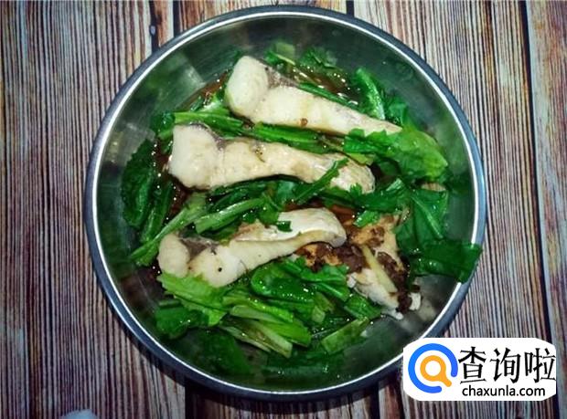 即可关火了。撒上适量的花生油在油麦菜上,即可享受美味的鱼块了。