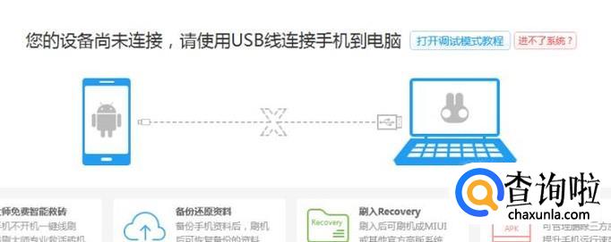安装完毕后我们打开刷机助手,然后用USB线连接手机到电脑。