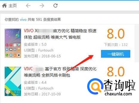 搜索结果出来后,我们可以选择适合我们的版本,然后点击“一键刷机”即可,是不是很便捷呀。