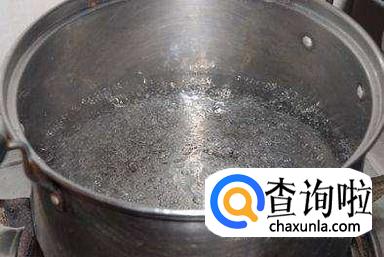 待水烧开后,再将洗干净的粽叶放进去一起煮。