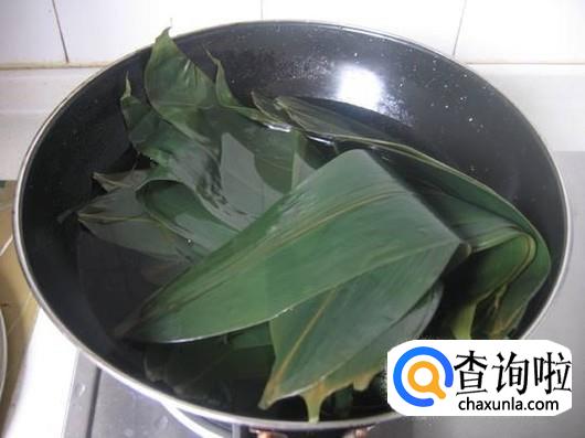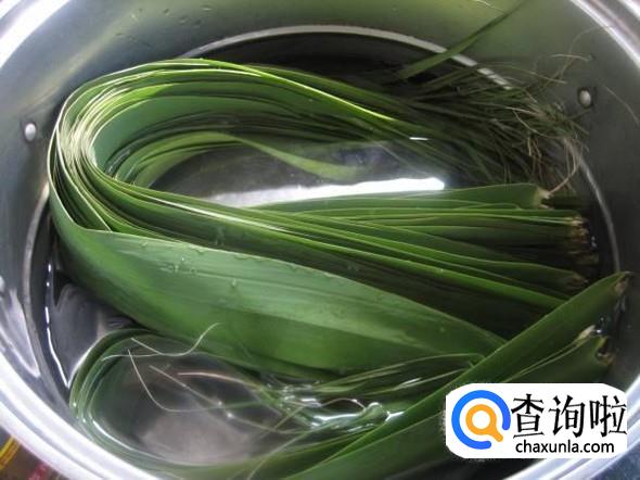 取出来的粽叶要放到凉水里泡,使粽叶立即降温,这样粽叶就不会发黄了。