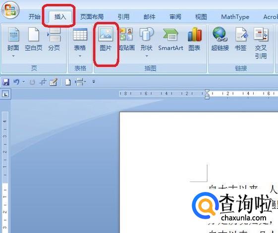 首先,我们打开一篇Word文档,通过插入图片来演示。点击“插入”,工具栏选择“图片”。
