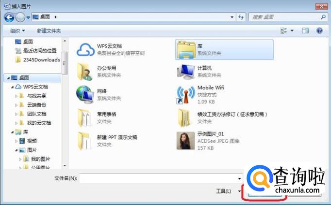 此时会调出“插入图片”选项框,选择图片插入即可。