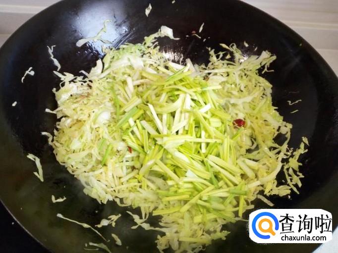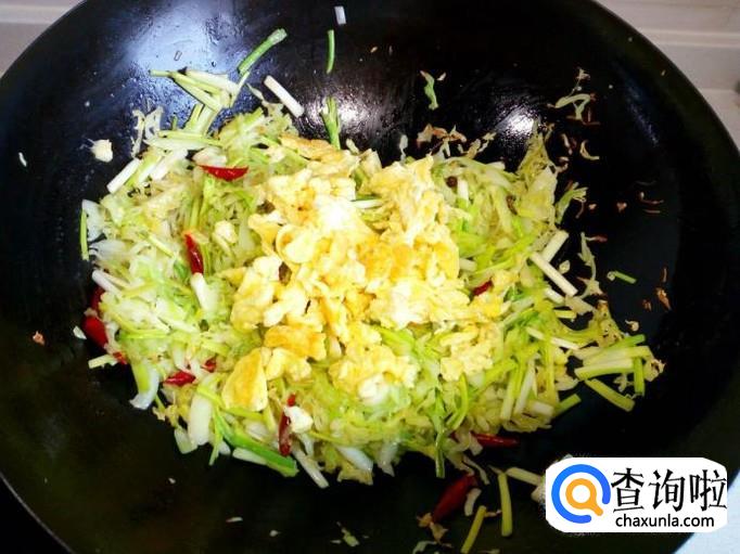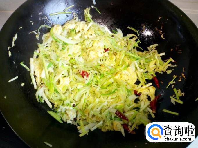 卷心菜炒至五分熟,放入韭黄翻炒,放入盐。炒至韭黄断生,放入鸡蛋翻炒。
