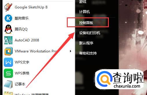 在电脑桌面上找到”开始“菜单栏中的”控制面板“选项,点击进入”控制面板“。