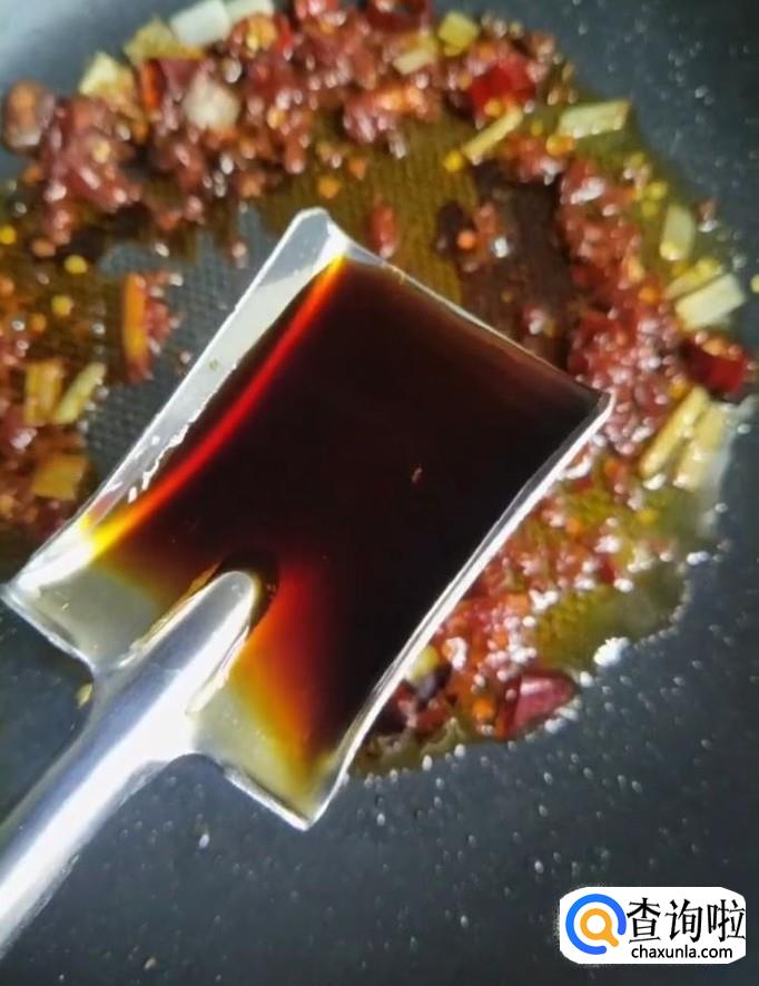 然后我们再放入适量的酱油,陈醋,适量的盐,鸡精调味