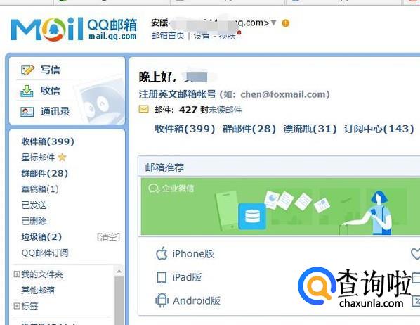 通过QQ或者QQ邮箱进入到QQ邮箱里面,见下图