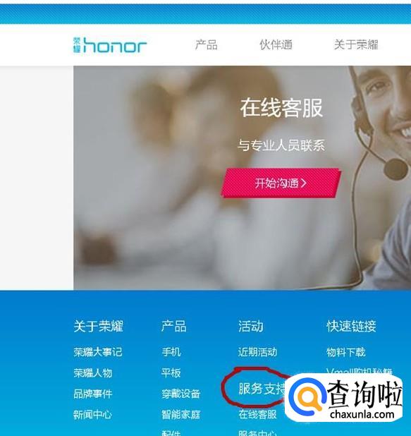 在荣耀页面下拉到下面,可以看到“服务支持”,点击它。