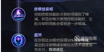 第二层选择终极技能帽,大招的cd在后期会非常快,清兵能力大大提升,一个团放两个大不是梦,第三层选择带超然,让技能更快冷却。