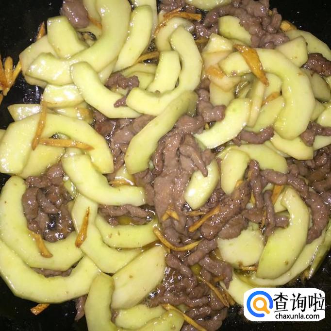 将秋黄瓜下入锅里,再加入适量的盐和鸡精,翻炒至熟,即可出锅。简单美味的牛肉丝炒秋黄瓜就完成了!
