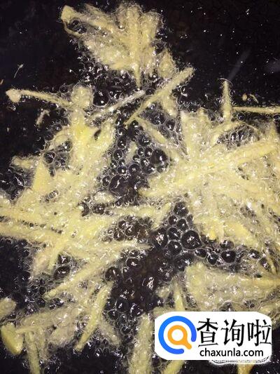 开火,锅里加入适量的食用油,待油温升高后,将姜丝下入锅里炒香;