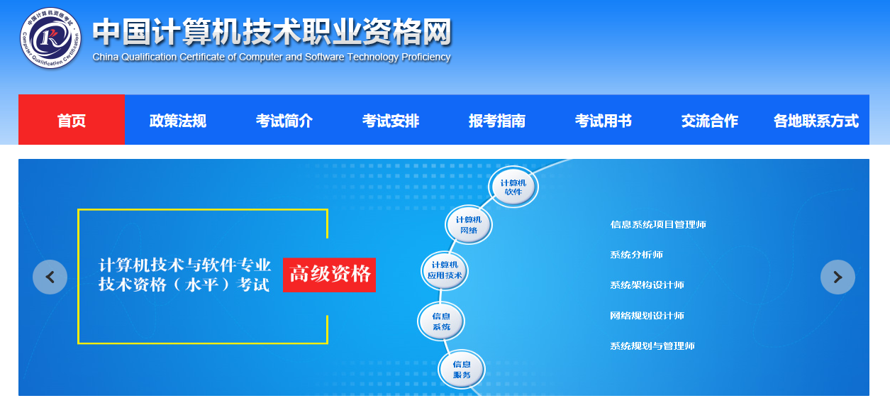 计算机技术与软件专业技术资格(水平)考试(以下简称软件水平考试)是原中国计算机软件专业技术资格和水平考试(简称软件考试)的完善与发展。这是由人力资源和社会保障部和工业和信息化部领导下的国家级考试,其目的是,科学、公正地对全国计算机与软件专业技术人员进行职业资格、专业技术资格认定和专业技术水平测试。上半年考试时间为5月底(第三个周六、周日),下半年考试时间为11月中旬(第二个周六、周日)。