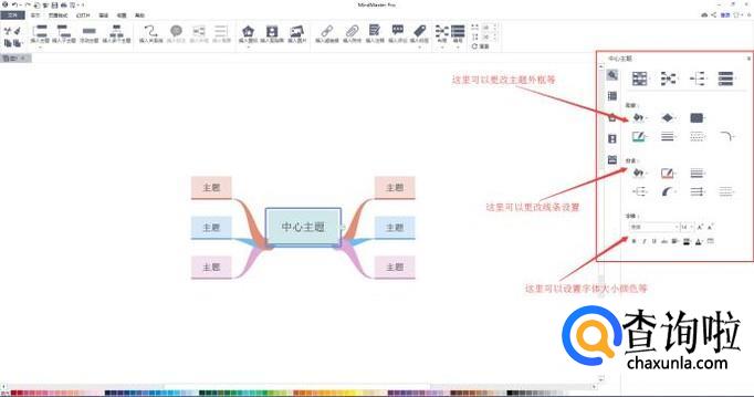 如果觉得颜色太单调,或者是想改变字体大小线条粗细等,可以通过右边中心主题菜单进行更改