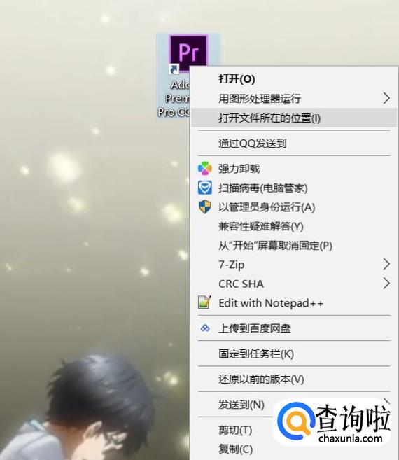 找到桌面Adobe Premiere的图标,鼠标右键打开文件位置