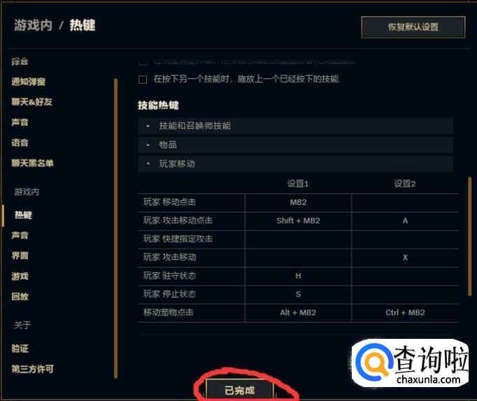 最后点击已完成,即可完成改键走A的设置