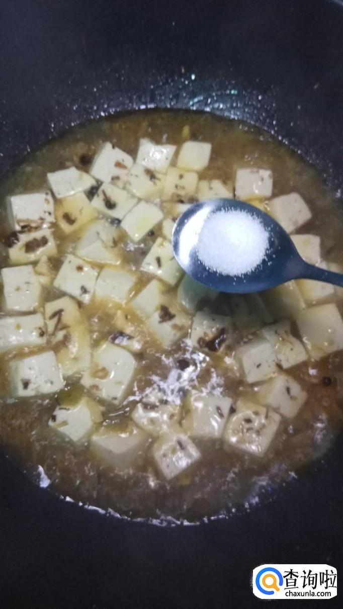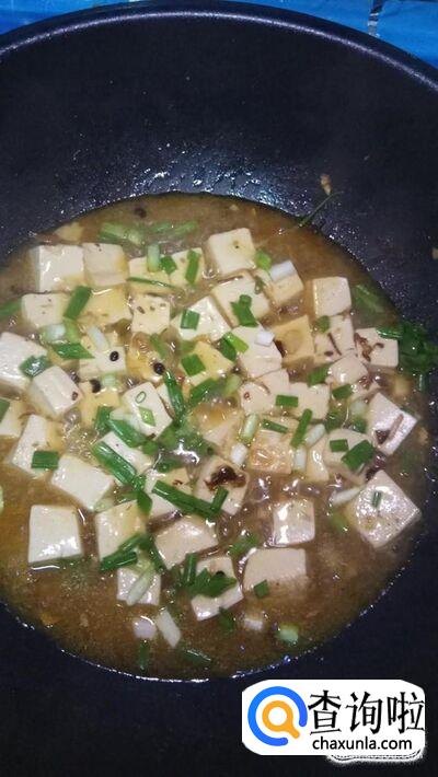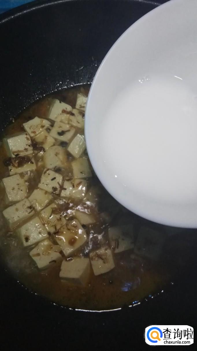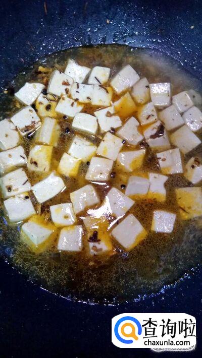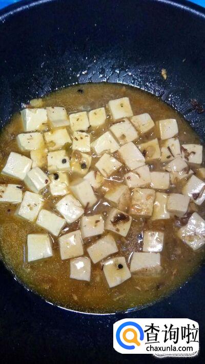 加入适量清水,没过豆腐,盖上锅盖,煮3到5分钟。