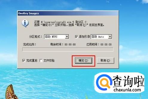 点击确定开始xp的安装,如图所示。