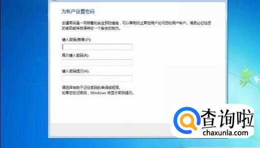 为账号输入密码,并且再次输入密码确认,然后输入密码提示问题保证自己在密码忘记的时候可以找回。