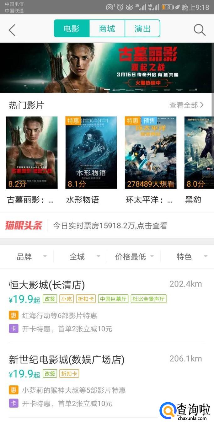 在第二个界面,我们可以选择自己想看的电影和合适的影院,选择好后,可以进入下一界面。