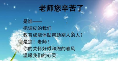 11、您工作在今朝,却建设着祖国的明天;您教学在课堂,成就却在祖国的四面八方。