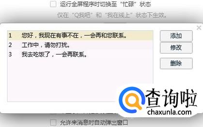 我们可以自行设置回复的话,不想要的还可以点击右边的删除。