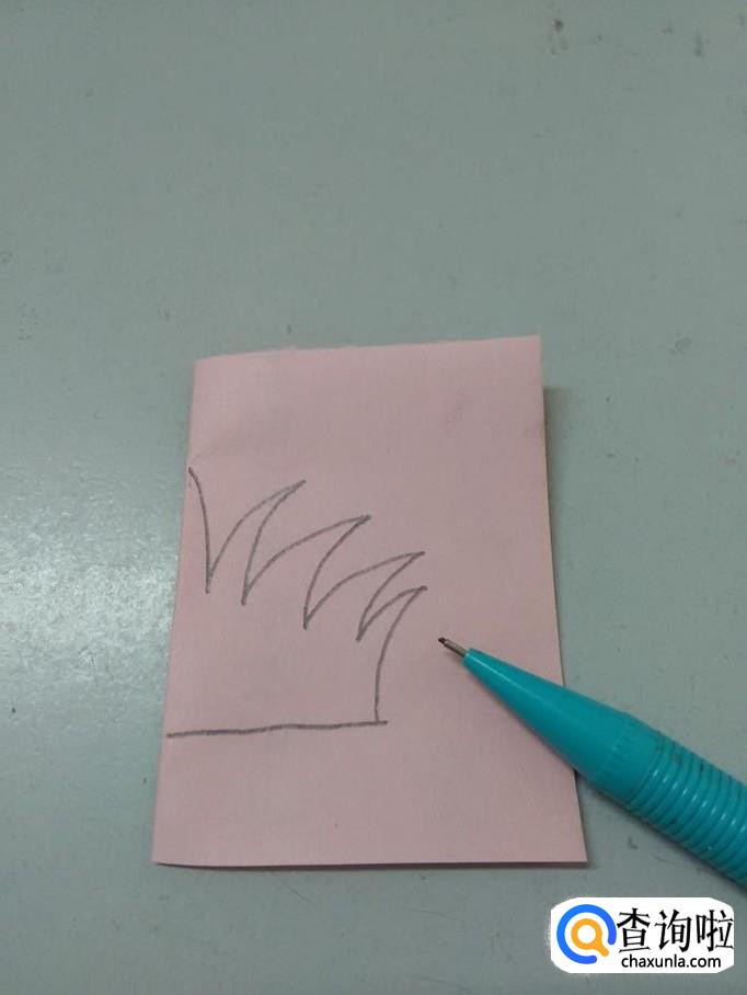 用铅笔在靠近左边的地方画一排锯齿状,锯齿的下边画一条横线。