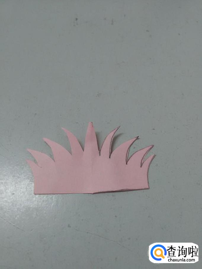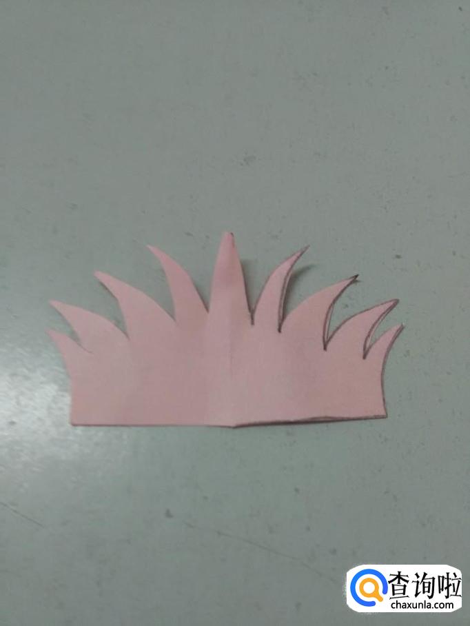 把彩纸打开后,就看到了一丛小草,这个剪纸不难,很适合小朋友自己做。