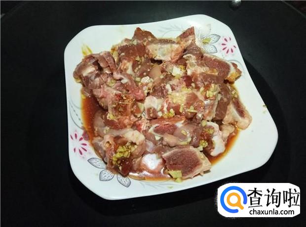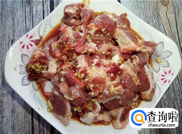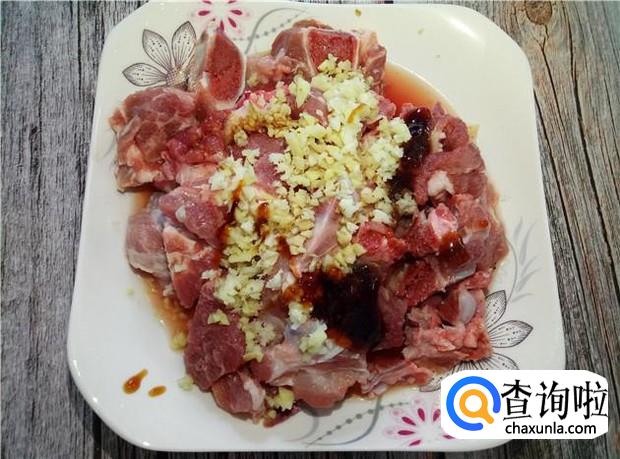 把姜蒜沫一起加入排骨中,再加入适量的花生油、酱油、蚝油、盐。