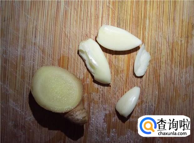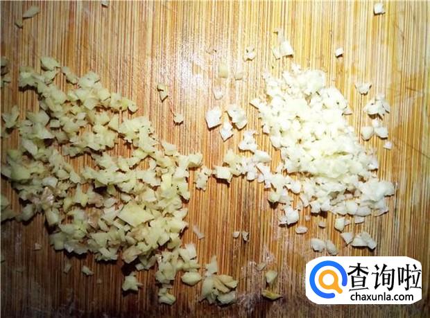 准备好适量的姜蒜,姜清洗干净,切碎;蒜头用刀背拍一下,这样蒜头的外衣就很容易去掉了,然后剁成蒜蓉。