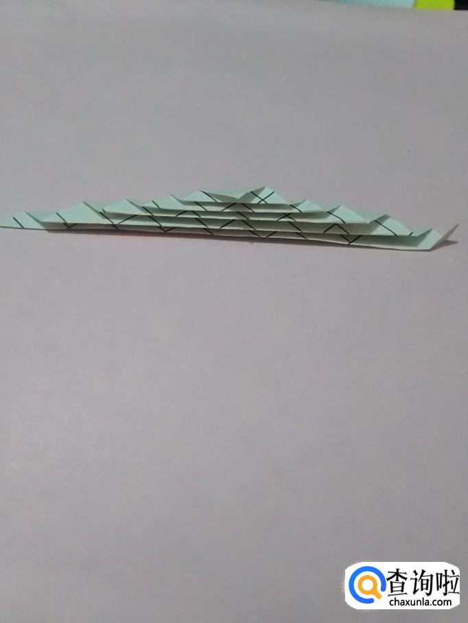每翻一次面,就将三角形底边向上折一小段,一直将三角形折到顶部。