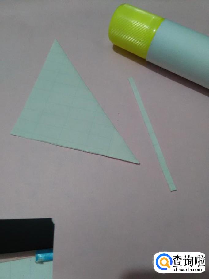 准备一张三角形的纸和一个细纸条,再准备一个胶棒。