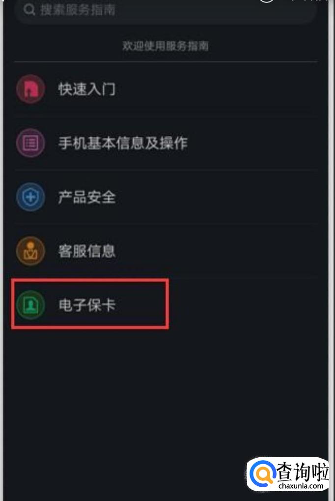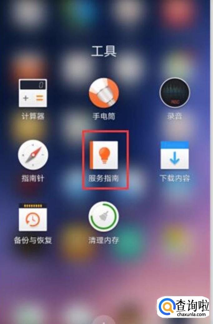 打开手机并且在桌面上点击服务指南。
