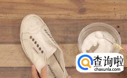 把水沥干,然后在鞋上均匀的涂上白牙膏。