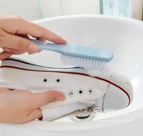 先把鞋子放在清水中浸泡一段时间,然后把它清洗一遍。