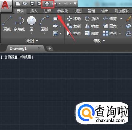 打开CAD这款软件在上面的菜单里找到打印选项,如图所示: