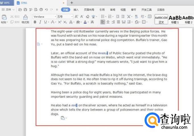 首先要打开wps,然后粘贴上一些英文,如下图所示: